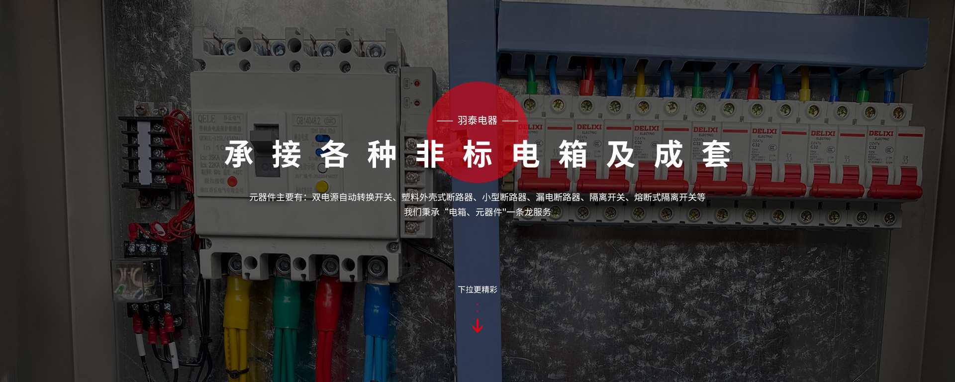 本公司坐落于人杰地靈,“中國(guó)制造之都“浙江省臺(tái)州市-黃巖。專注工業(yè)電氣領(lǐng)域,是一家集科研、生產(chǎn)、銷售為一體的較全方面型電氣企業(yè)。主要生產(chǎn):低壓成套配電箱、配電柜、電表箱、動(dòng)力箱、照明箱、工地臨時(shí)箱、設(shè)備控制箱,以及各種元器件。元器件主要有:雙電源自動(dòng)轉(zhuǎn)換開(kāi)關(guān)、塑料外殼式斷路器、小型斷路器、漏電斷路器;隔離開(kāi)關(guān)、熔斷式隔離開(kāi)關(guān)等,公司產(chǎn)品嚴(yán)格按照國(guó)家CQC,CCC標(biāo)準(zhǔn)執(zhí)行,滿足于家庭與工業(yè)要求。我們秉承“電箱、元器件"一條龍服務(wù)。